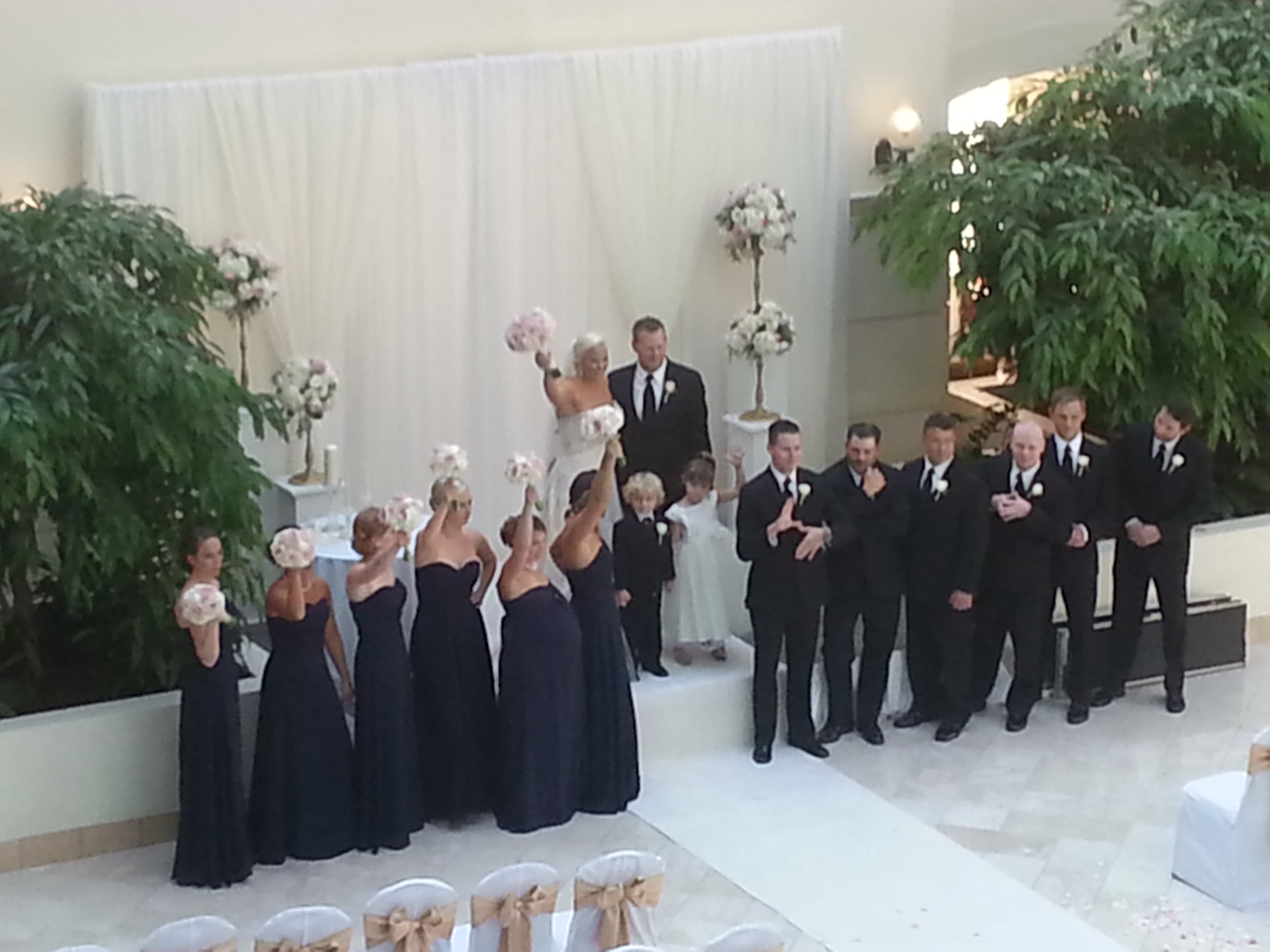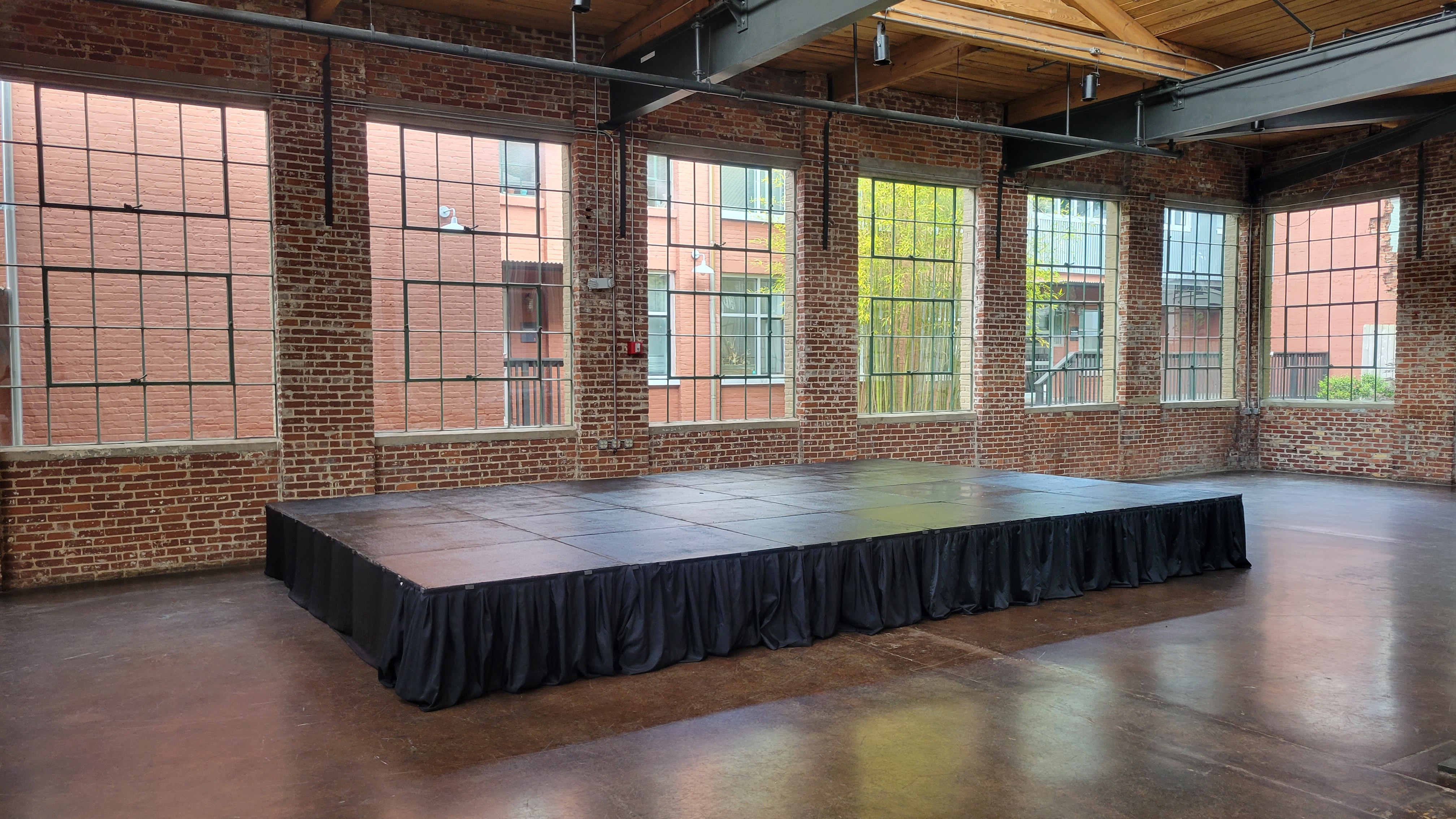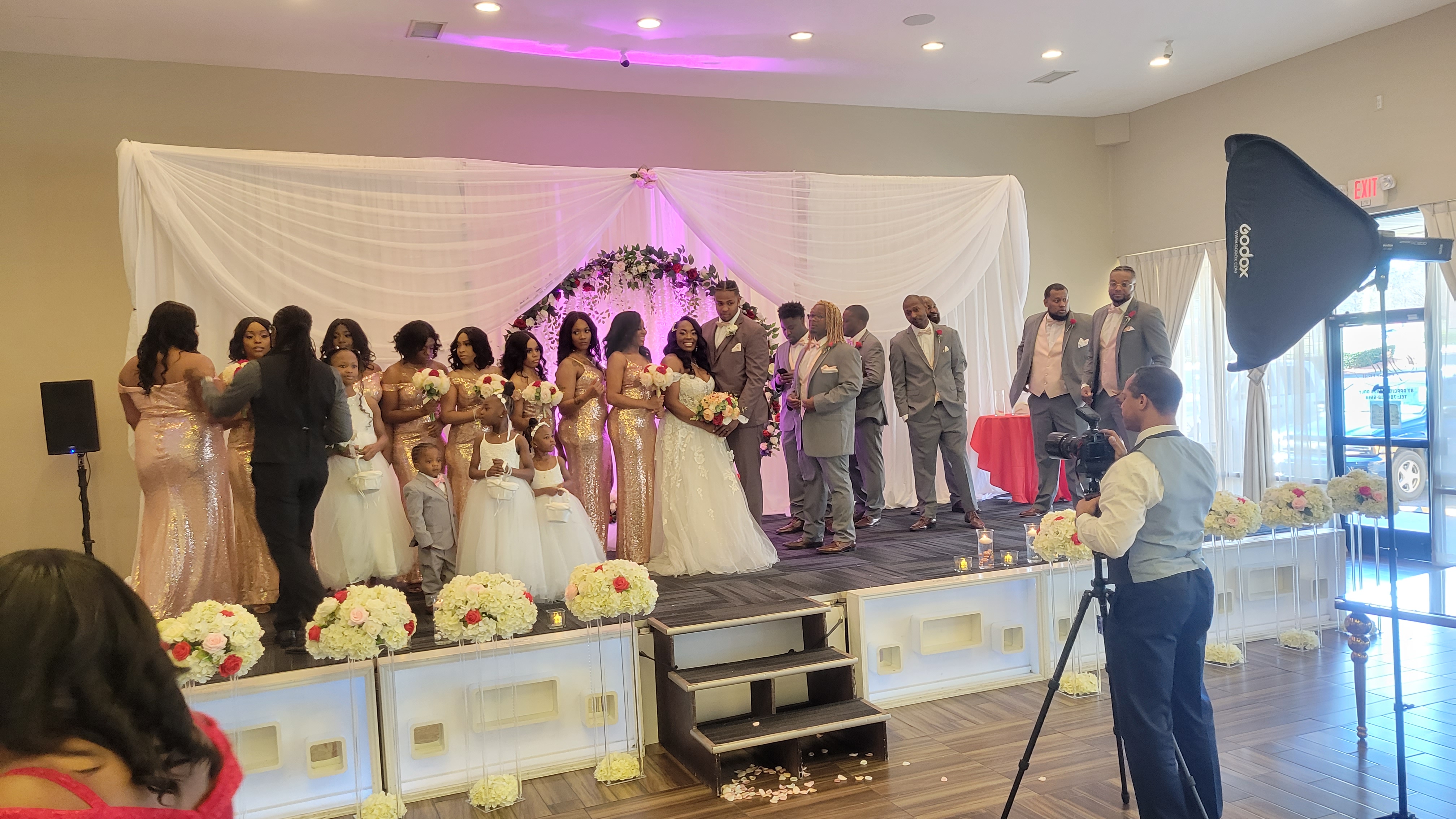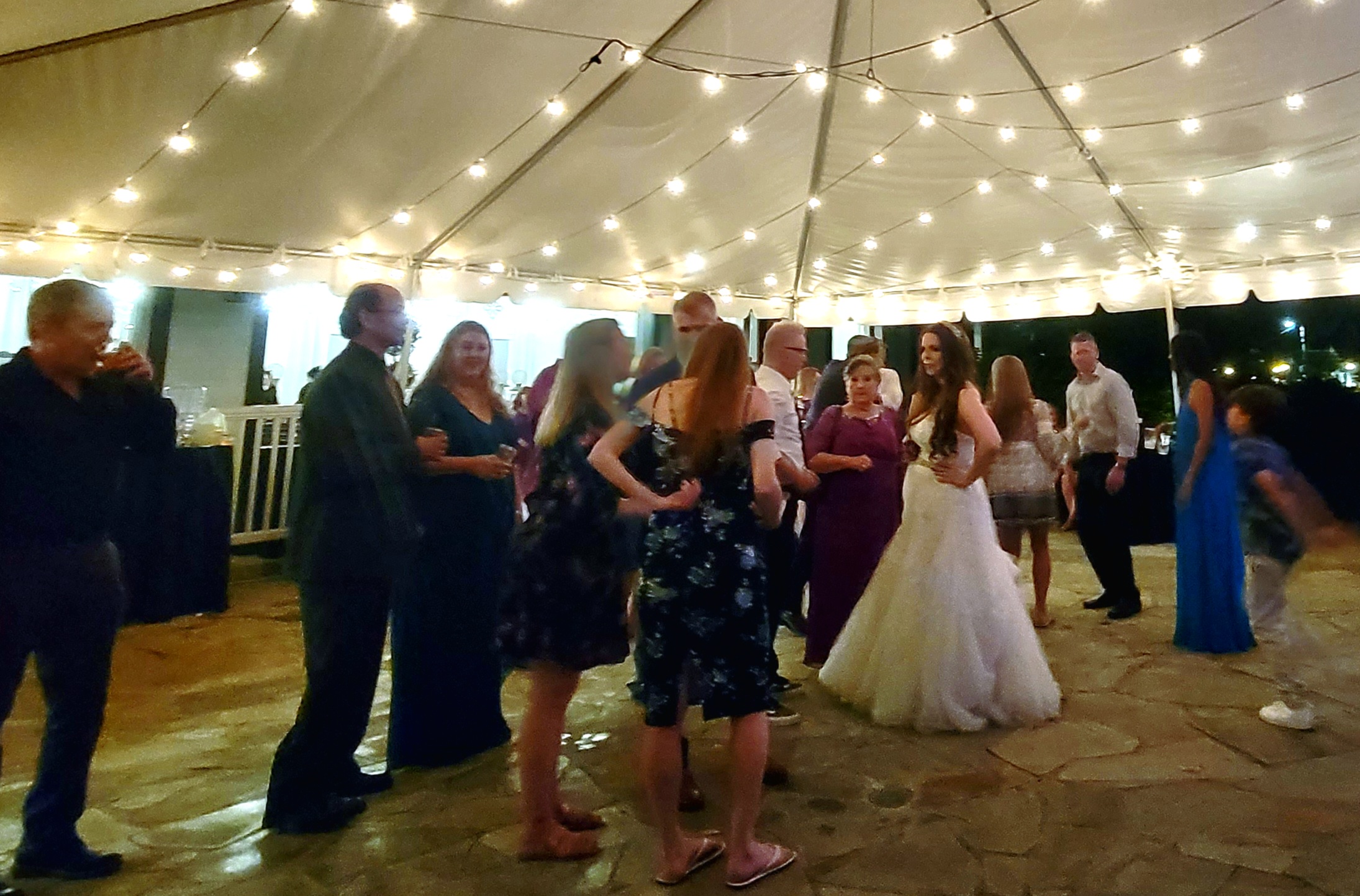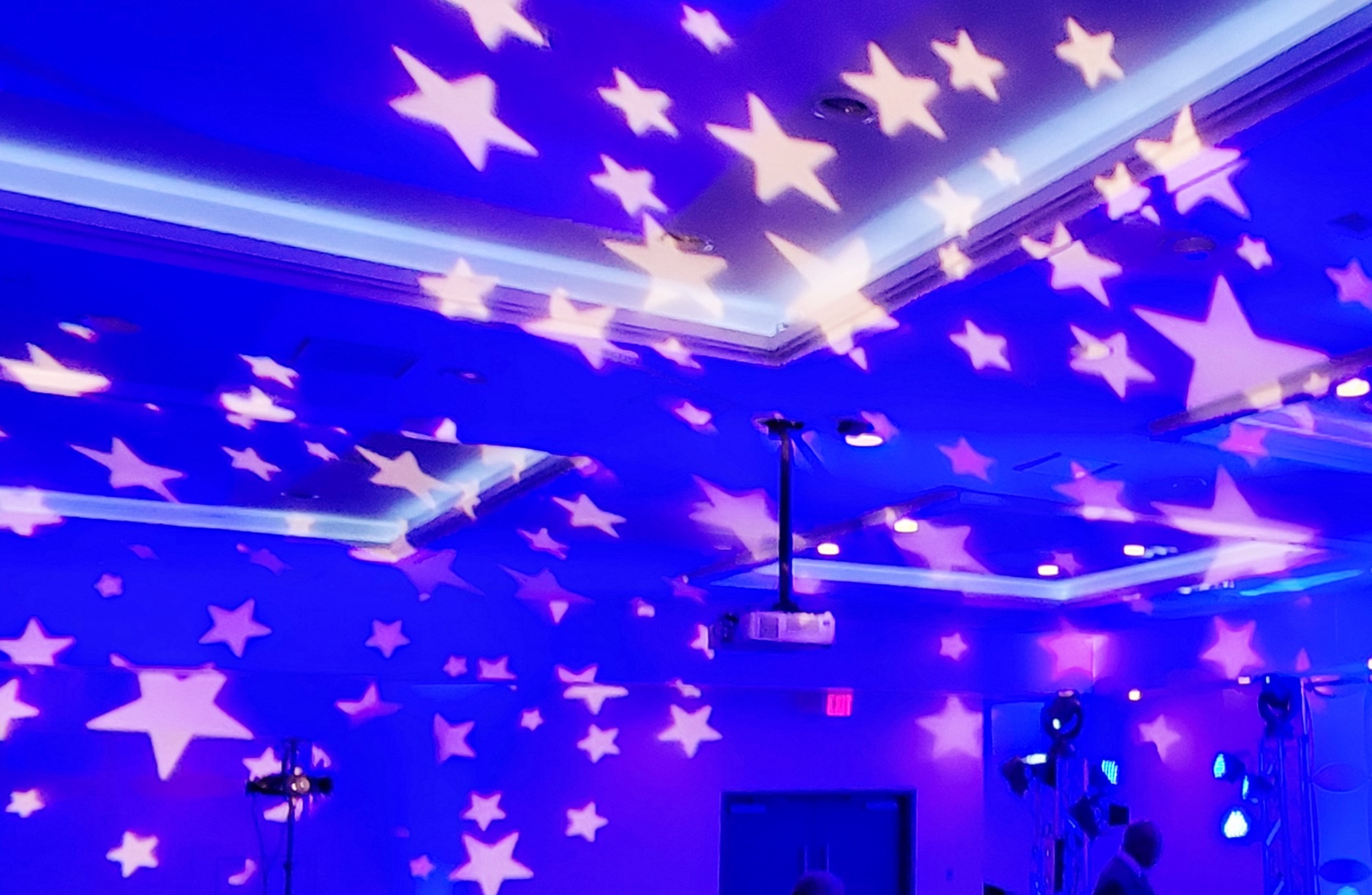 Heavy duty stage decks in 4×4 sections – Café style string lights – Fairy String lights in 2 different styles – String light curtains – Twinkle lights – Christmas style lights with white strands – Band stage – Dance floors in both wood and Snaplok Vinyl – Up lighting options – Pipe and Drape – Sheers – “Dancing in the Clouds” dry ice machine – Cold Sparks – Stage Lighting – Ceiling Sheers in white and black – Gobo monogram lighting – Sweetheart stage